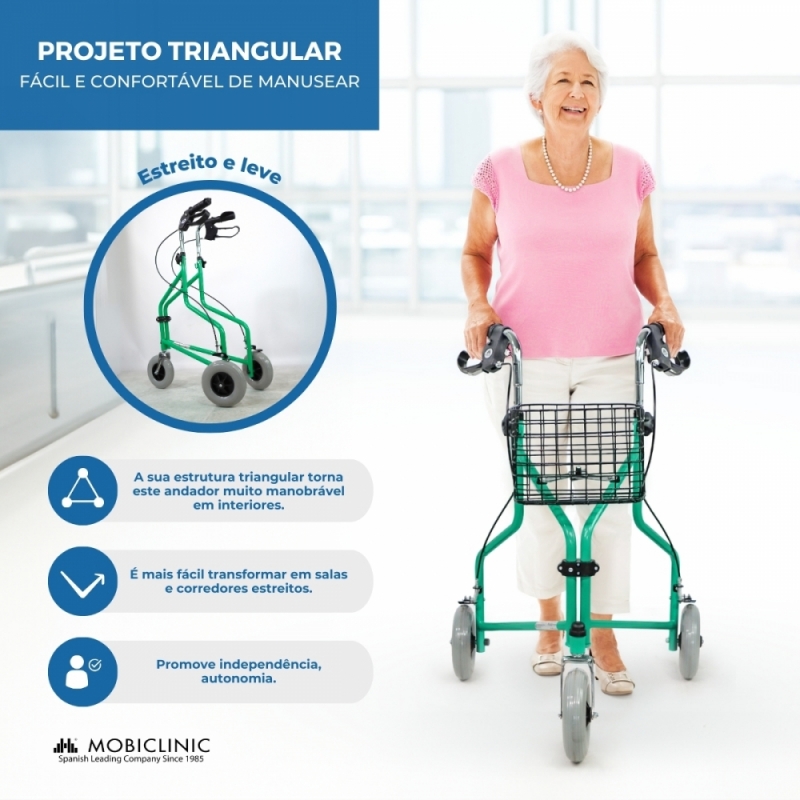 Este andador ortopédico de três rodas para idosos ou pessoas idosas é indicado para pessoas com problemas de mobilidade , que estejam em tratamento ou em processo de reabilitação, pois lhes proporciona a estabilidade necessária durante seus movimentos e caminhadas.