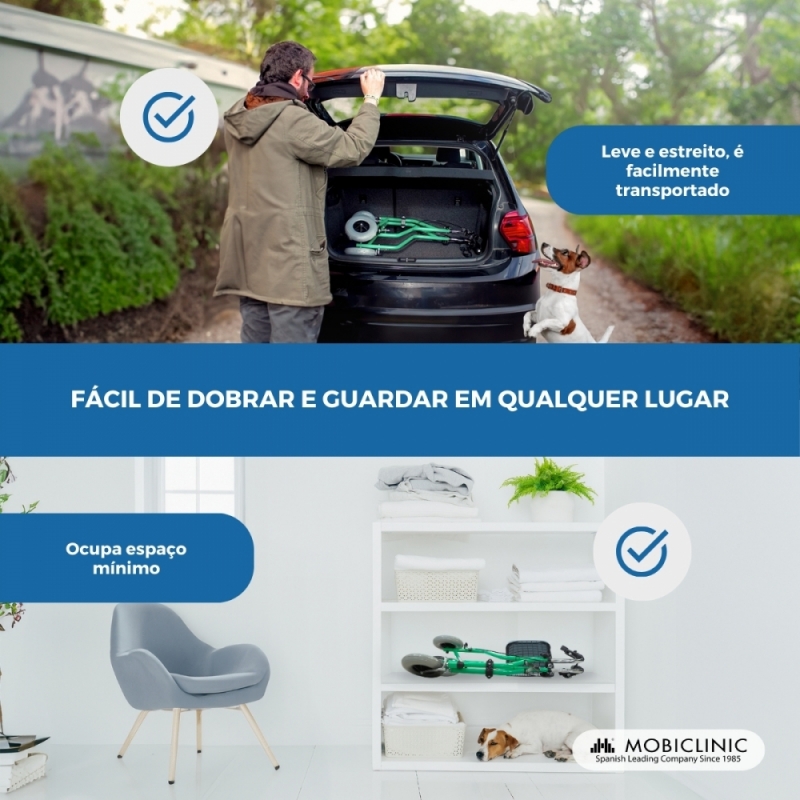 DOBRÁVEL: Você não terá que se preocupar em transportar ou armazenar este andador , pois, por ser um andador dobrável, ele se dobra com muita facilidade e ocupa o mínimo de espaço (16,5 cm de largura quando dobrado)