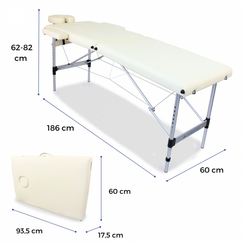 Mesa de massagem dobrável | Encosto de cabeça | Portátil | Alumínio | 186x60 cm | Crema | CA-01 Light | Mobiclinic