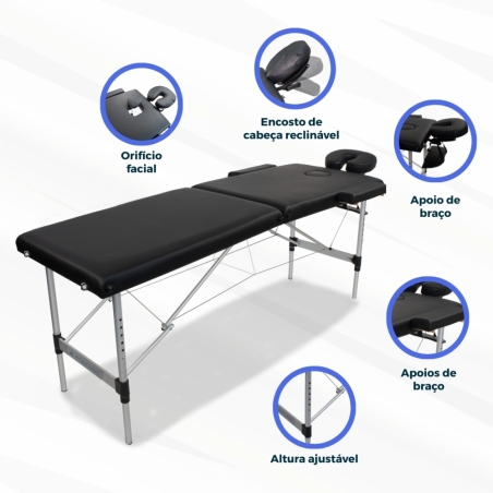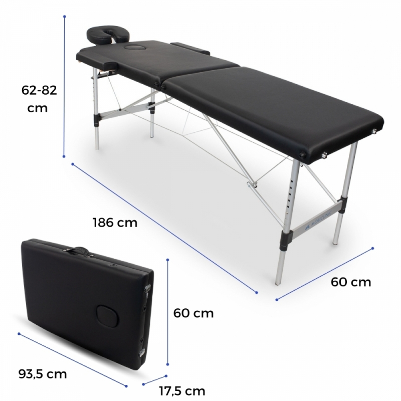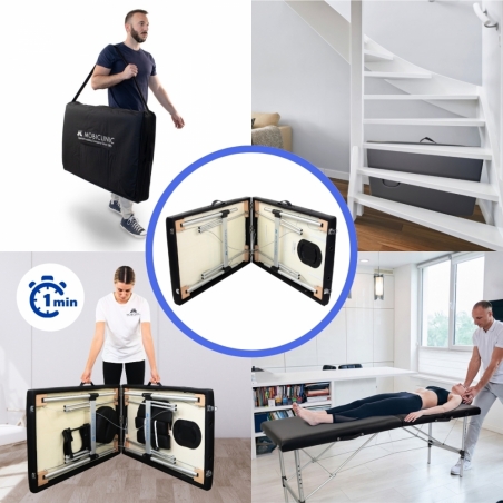 Marquesa de massagens portátil| Reposacabeças | Dobrável | Alumínio | 186x60 cm | Preto | CA-01- Light | Mobiclinic