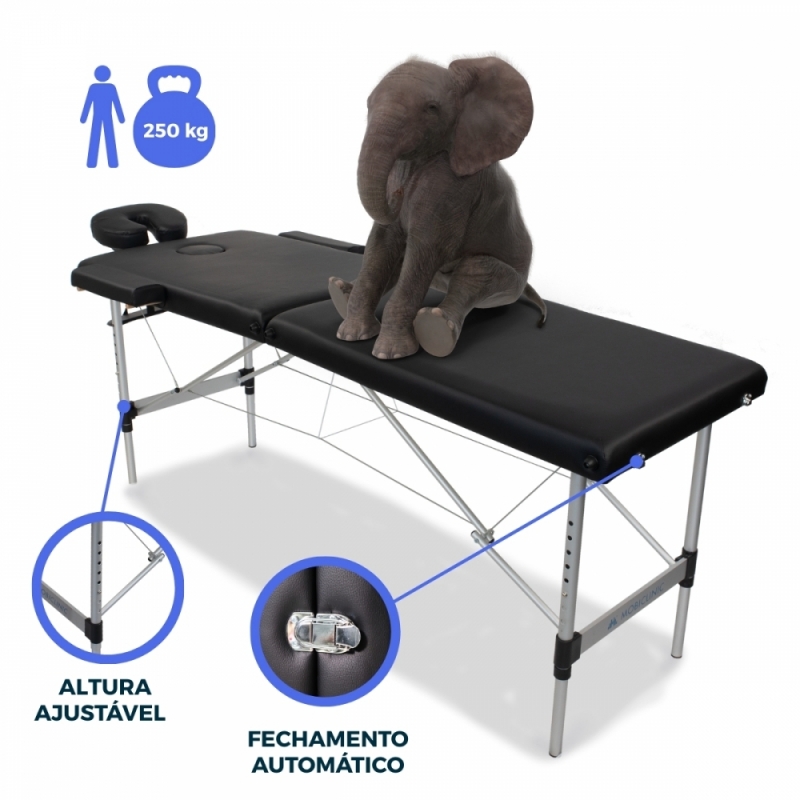 É uma mesa de massoterapia ajustável em altura através das pernas, tendo vários níveis para adaptá-lo ao que é mais confortável para você.