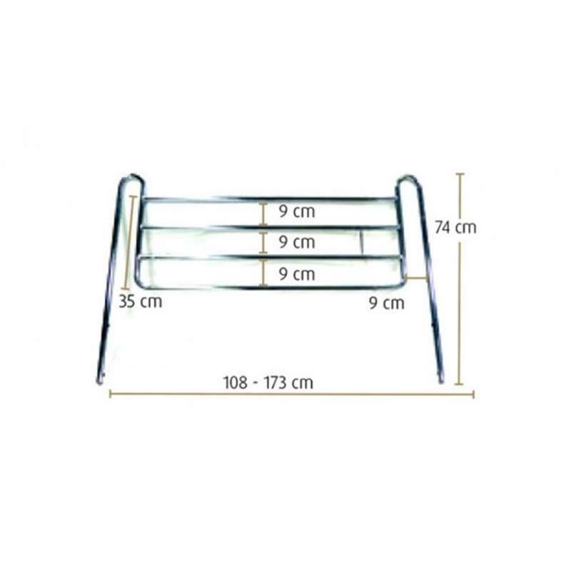 Para prevenir tais acidentes na cama, oferecemos-lhe a barra de deslize universal. Trata-se de uma grade de cama feita de aço cromado, que desliza facilmente para baixo para facilitar o acesso à cama. Ao contrário de um corrimão de madeira ou de um corrimão de cama comum, este é fácil de montar.