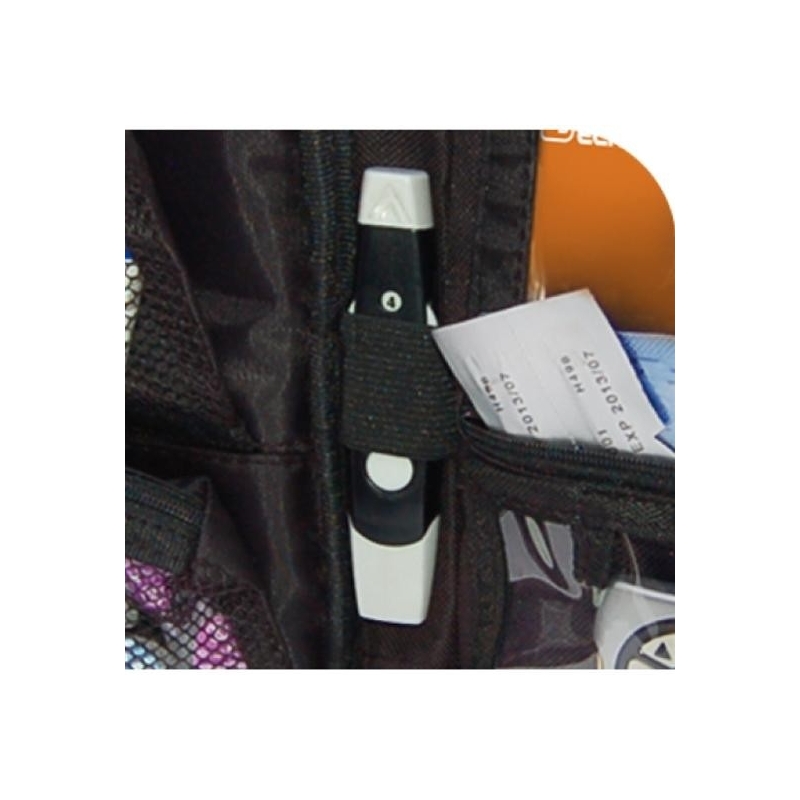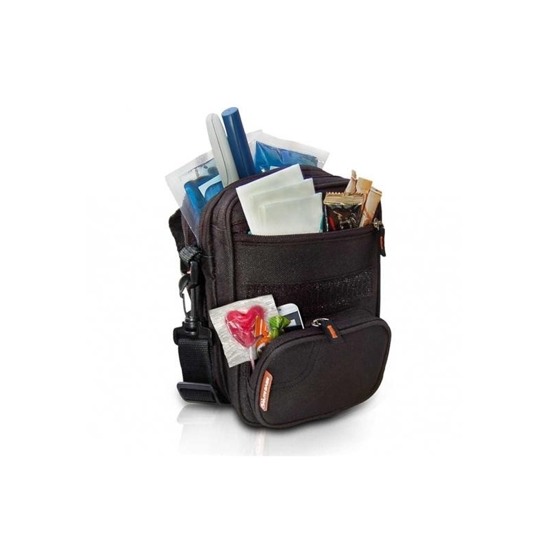 Saco de tiracolo isotérmico projetado para abrigar todo o material necessário para o tratamento da diabetes nas suas viagens ou ferias. O seu sistema multidepartamental permite ao utilizador armazenar e diferenciar facilmente entre instrumentos de medição (glucómetro, tiras-teste, lancetas) e canetas de insulina pré-carregadas, e até objectos pessoais. Há um espaço separado para cada um dos materiais descritos acima.