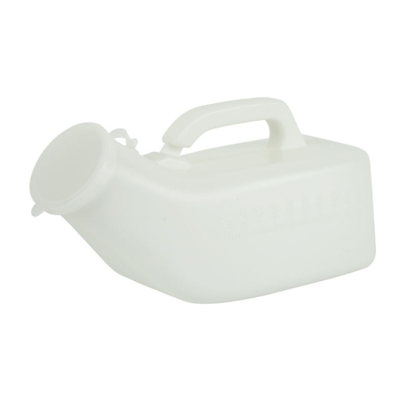 Urinol portátil com capacidade de 1 litro. Concebido para pessoas com incontinência urinária ou acamadas, quer por doença crónica, quer em fase de recuperação de uma operação ou reabilitação. É um produto altamente valorizado entre as mulheres idosas.