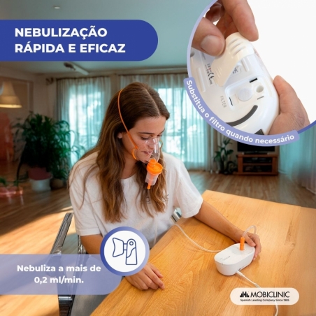 COMPACTO E LEVE: Seu tamanho compacto e leveza facilitam o armazenamento, o transporte e/ou o uso em qualquer lugar. Além disso, graças à sua nebulização rápida de 0,2 ml/min e um volume residual de aproximadamente 3,9 ml, o medicamento é utilizado em todo o seu potencial. A nebulização é uniforme, tornando a inalação confortável e rápida.