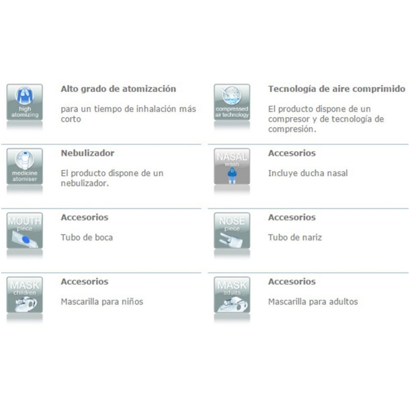 Este inalador Beurer permite inalar o medicamento mediante tecnologia de ar comprimido (pressão 0.8 bar) conseguindo uma alta proporção de partículas respiráveis.