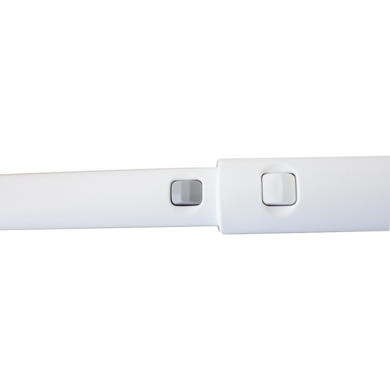 O seu uso é simples. Pressionando o botão branco na pega, pode aumentar a primeira secção da calçadeira até 45 cm. Se você pressionar o botão cinza, poderá estender a segunda seção da calçadeira para 58 cm de comprimento. Para voltar ao comprimento inicial, basta repetir o processo na direção oposta.
