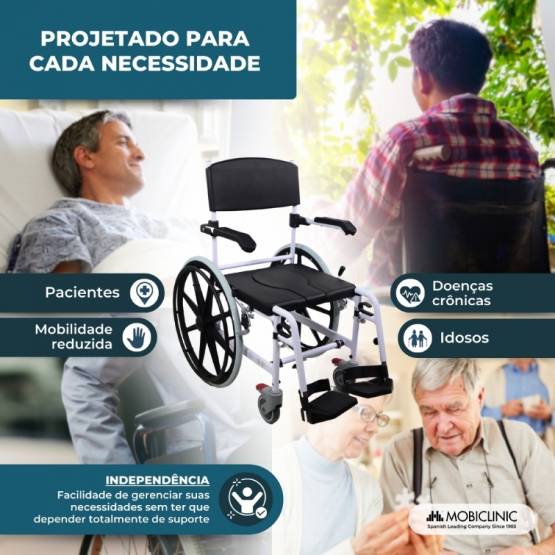 A cadeira de rodas para banheiro Calígula é a solução perfeita para pessoas que buscam conforto e funcionalidade no dia a dia. Seu design multifuncional permite que seja usado tanto para lavar quanto para tomar banho, facilitando as rotinas de higiene pessoal de forma segura e prática. Além disso, seu assento acolchoado e apoios de braços e pés dobráveis proporcionam conforto extra, adaptando-se às necessidades do usuário.