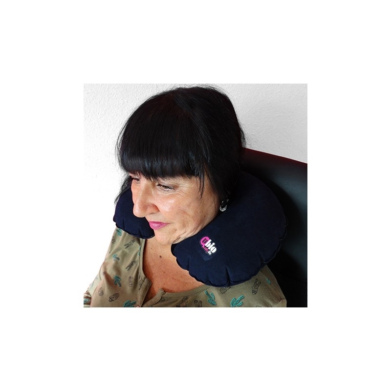 Colar de pescoço inflável anatômico de viagem em azul marinho.