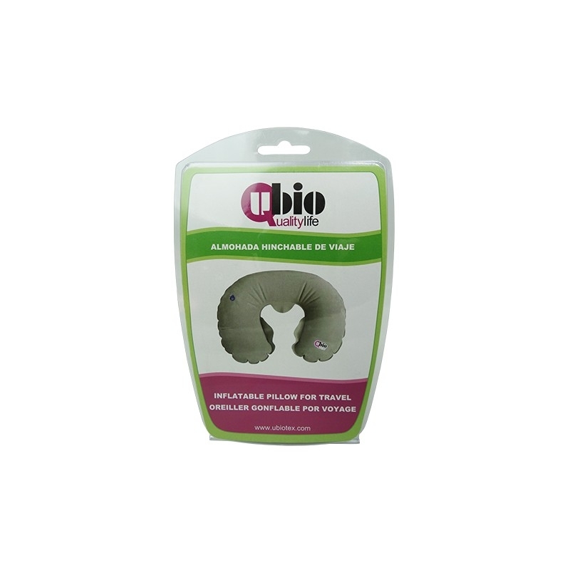 Cinta de pescoço anatômica inflável cinza de viagem.