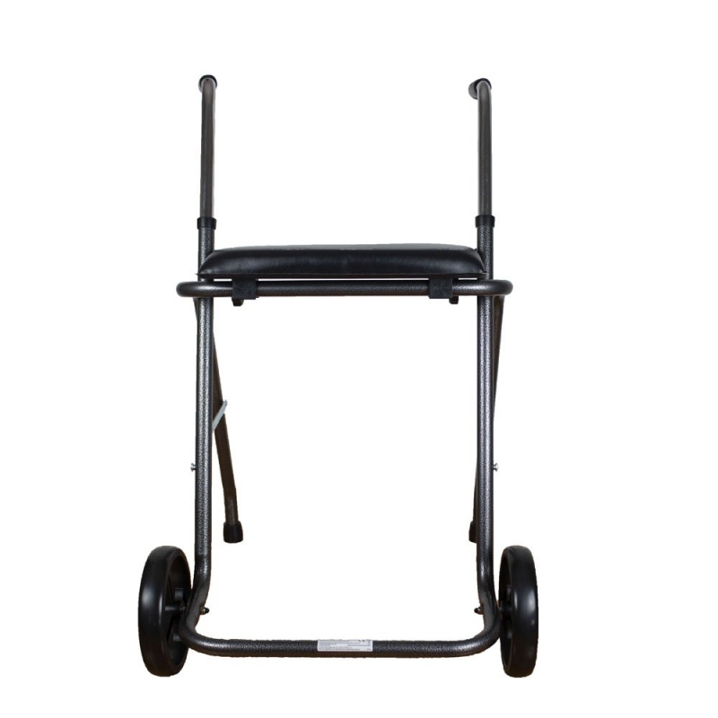 Nunca antes um andarilho foi tão completo e concebido para todos os tipos de pessoas: rodas dianteiras, conteras, poltrona acolchoada, ajustável em 8 alturas tornando-o o mais alto do mercado e dobrável.