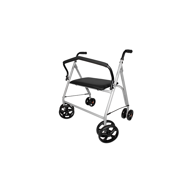 Rolador de aço ária dobrável com dimensões e resistência para pessoas até 180 kg. O assento com encosto é macio e maior do que o habitual para oferecer maior conforto ao utilizador. As pegas do enrolador são ajustáveis em altura.