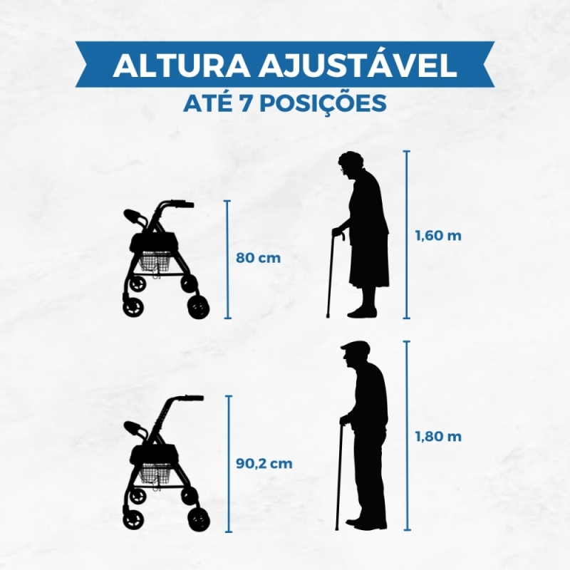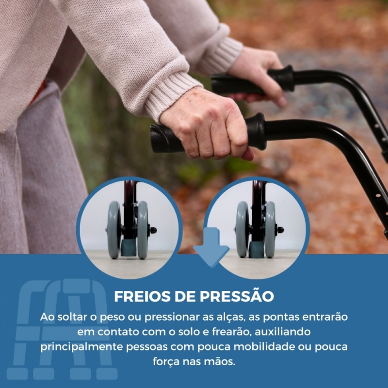 SEGURO: O andarilho adulto possui freios de pressão, que são facilmente ativados ao exercer força nas alças do rollator . Da mesma forma, a almofada do andarilho ajusta-se ao assento através de 4 fechos de velcro que são fixados ao tubo do andarilho , proporcionando uma aderência total. Estas características tornam este produto muito seguro, pois evita quedas.