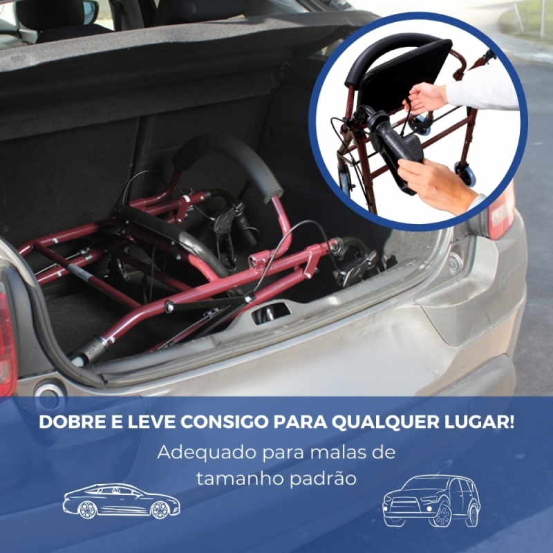 PORTAS E TRONCO : Este andarilho tem largura total de 60 cm, podendo passar por portas padrão de 62,5 cm de largura. Além disso, como este andarilho dobrado mede apenas 24,5 cm, é muito fácil de transportar. Certifique-se das medidas das portas e do veículo para verificar se está adequado a si.