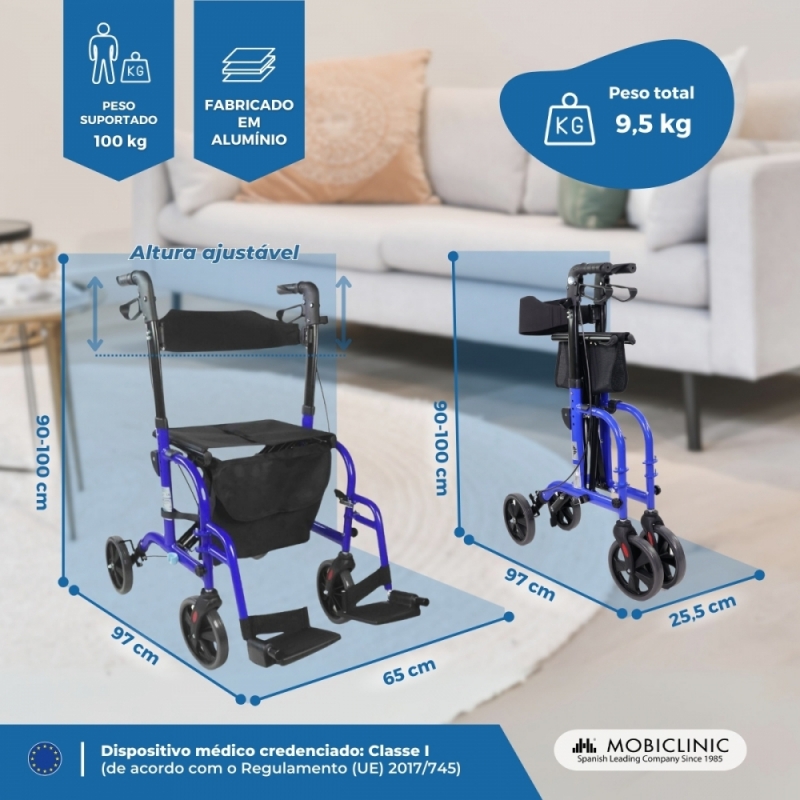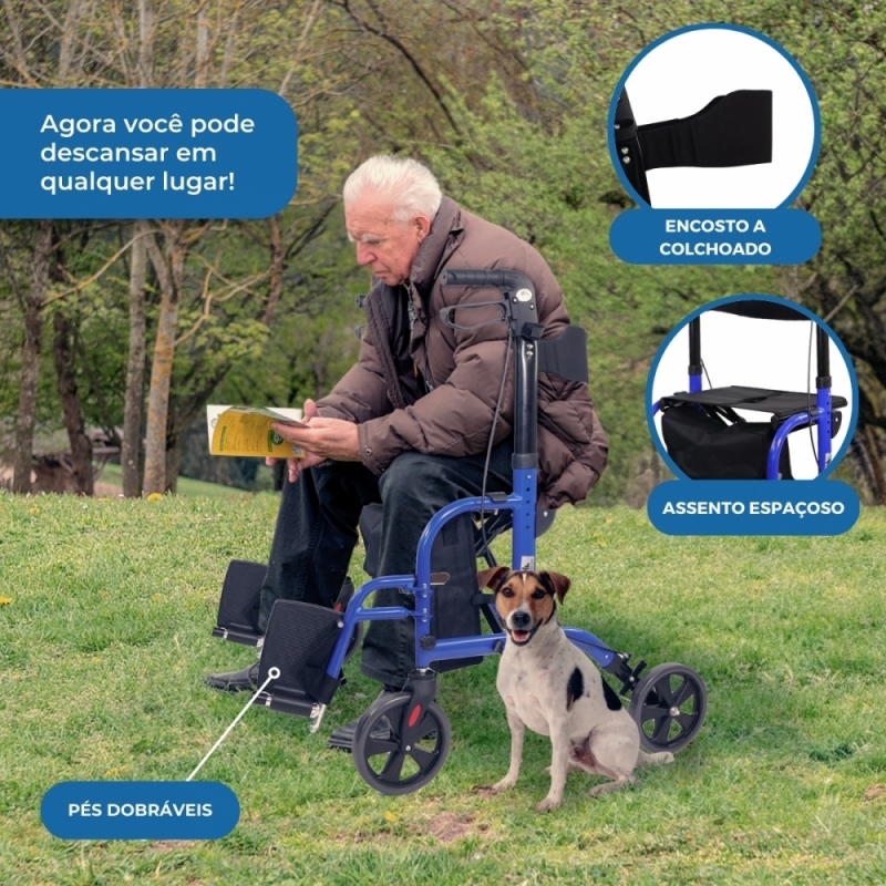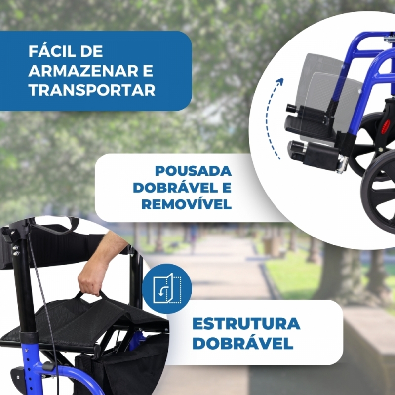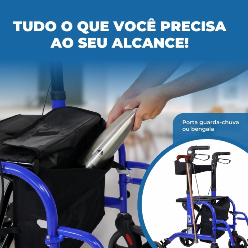 SEGURANÇA E INDEPENDÊNCIA: Este andarilho para adultos permite ao usuário ter maior mobilidade e segurança nas viagens.