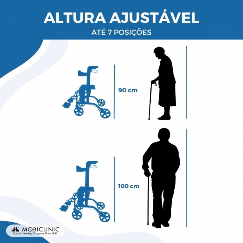 Este andador para idosos inclui pegas ergonômicas confortáveis que ajudam a reduzir a fadiga durante o uso. Em sua alça inclui travão de acionamento suave para parar o andador no momento desejado e sem necessidade de esforço.