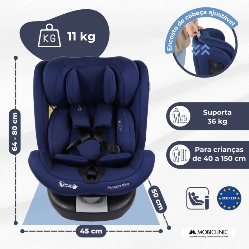 AJUSTÁVEL: Possui encosto de cabeça ajustável em 10 posições que se adapta ao desenvolvimento da criança, garantindo ótima proteção à medida que ela cresce. Além disso, a cadeirinha Pandafix tem a possibilidade de reclinar em diversas posições, tanto voltada para frente quanto para trás.