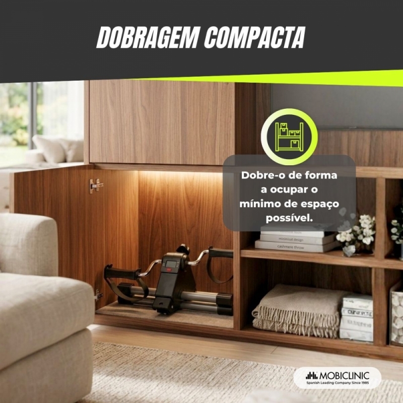 DESIGN DOBRÁVEL ULTRACOMPACTO : Este exercitador de pedais dobra-se completamente, ocupando um espaço mínimo quando não está em uso. Ideal para casas pequenas, escritórios ou para facilitar o transporte.