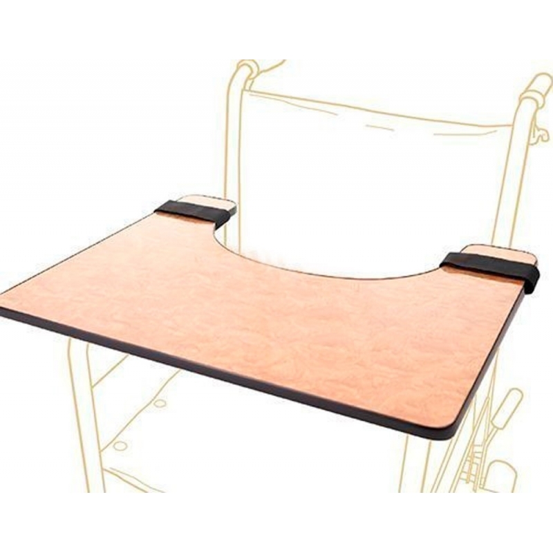 Esta tabuleiro para cadeiras de rodas é feita de um conglomerado forte de 15 mm de espessura de média densidade. Adapta-se facilmente a todos os tipos de cadeiras de rodas graças às correias.