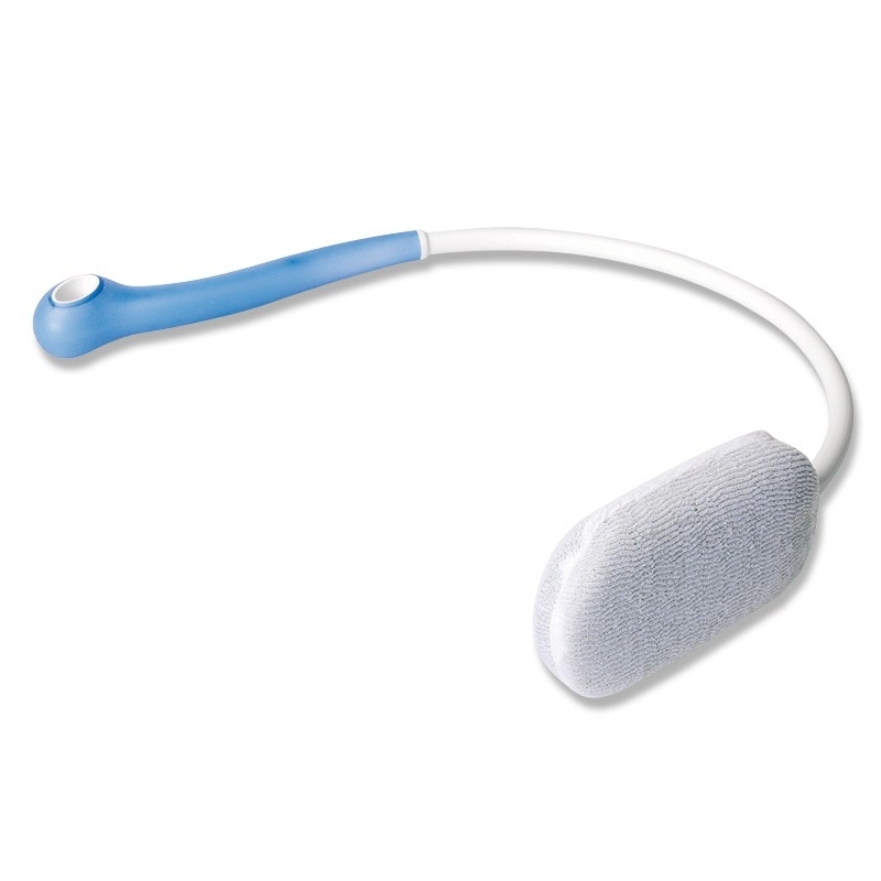 Fabricação em polipropileno e nylon com polietileno. Esponja de tecido toalha com alça oval curva que fornece um aperto firme. Por não absorver água, não pesa e é fácil de usar. É uma ferramenta perfeita para aqueles idosos que querem permanecer independentes em sua rotina.