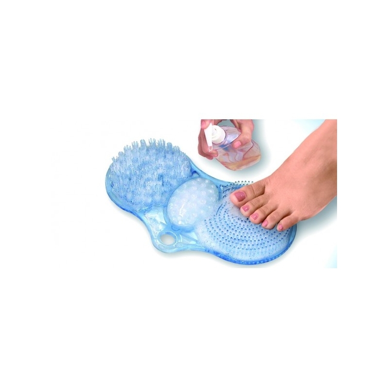 Pode ser usado sentado, basta colocar os pés com sabão sobre as fibras para lavá-las sem dobrar. Tem várias ventosas na parte inferior para que possa ser colocado numa casa de banho ou duche de forma fácil e segura. Ele também pode ser usado com qualquer tipo de sabão líquido.