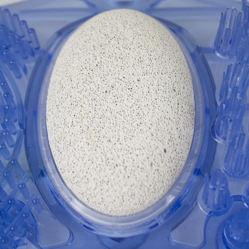 Este lavapés é perfeito para lavar os pés sem ter de se dobrar. Tem dois tipos de cerdas, umas mais duras e outras mais macias e macias que podem ser intercaladas conforme necessário. E no centro há um pedaço de pedra-pomes para esfoliar e suavizar suavemente os pés.