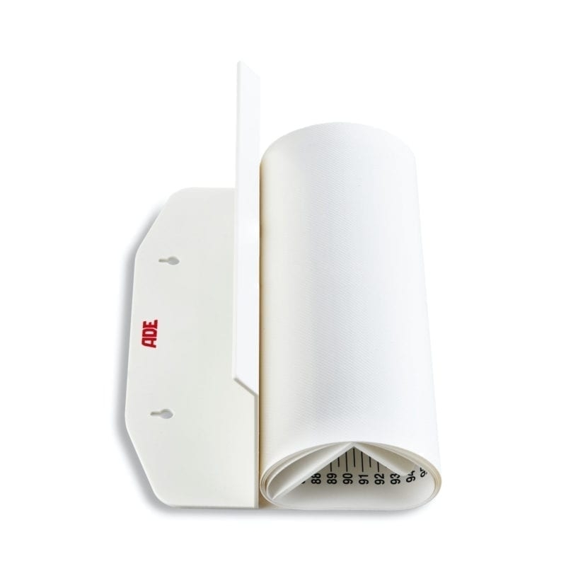 Ideal para medir o comprimento de bebês e crianças pequenas de forma portátil. Graças ao seu peso leve e material flexível, você pode usá-lo verticalmente e horizontalmente. Inclui dois furos para pendurar na parede, você também pode colocá-lo em uma superfície ou mesa de trabalho. Na parte inferior e superior possui dois suportes que orientam a localização correta dos pés e da cabeça do bebê. O limite inferior pode ser deslizado pelo tapete, observando o tamanho de acordo com a escala de medidas. É confeccionado em couro (pele) que é um material higiênico, resistente e de fácil limpeza.