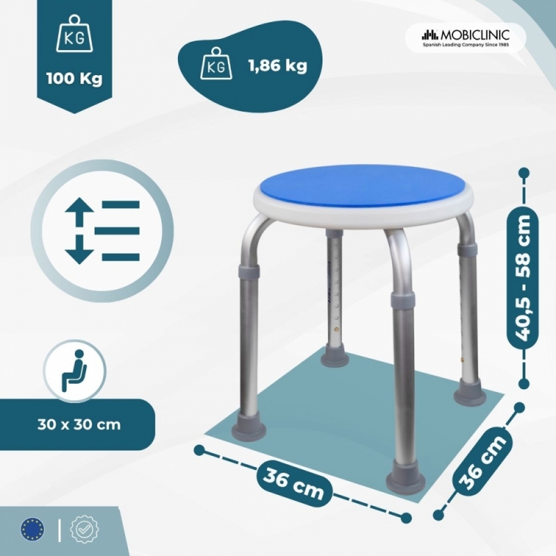 AJUSTE RÁPIDO E PRECISO: Este banco de chuveiro possui um sistema de botão de pressão para ajustes de altura fáceis e sem ferramentas. Oferece 8 posições para atender às diferentes necessidades do usuário.
