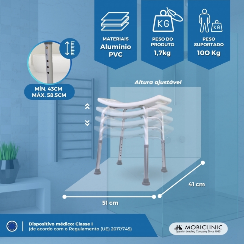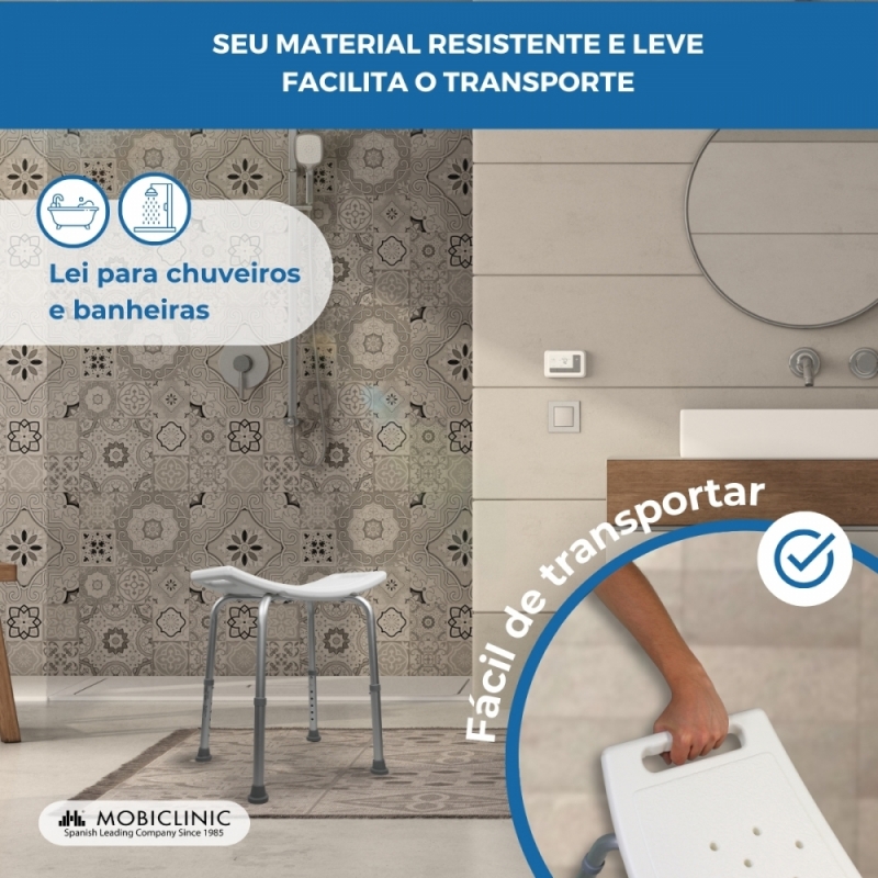 O banco de banho San Fermín é ideal para idosos ou pessoas com problemas de mobilidade reduzida para desfrutar dos seus duches ou banhos de forma confortável e segura.