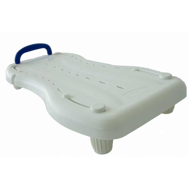 Tábua de banho ergonómica Invacare, feita de PVC para uma entrada ou saída confortável e segura da banheira. Composto por 4 pernas que podem ser ajustadas a banheiras com uma largura interior de 400 a 620 mm, e orifícios de drenagem líquida para uma maior higiene. É leve, fácil de limpar e a sua utilização é recomendada para pessoas que sofrem de perturbações do movimento funcional, a fim de facilitar a sua rotina.