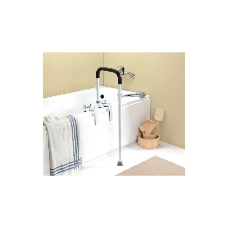 Se podrá sujetar firmemente a la pieza de mano acolchada y antideslizante. Altura del asidero 97 cm (+ 40 cm mínimo con respecto al borde de la bañera). Grosor mínimo de los bordes: 8,5 cm y grosor máximo 14 cm.