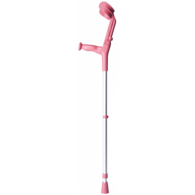 Esta muleta é muito leve e é feita de alumínio e termoplástico. Regulável em altura, com 10 posições na haste e 5 posições no cotovelo. Disponível em várias cores muito atraentes.