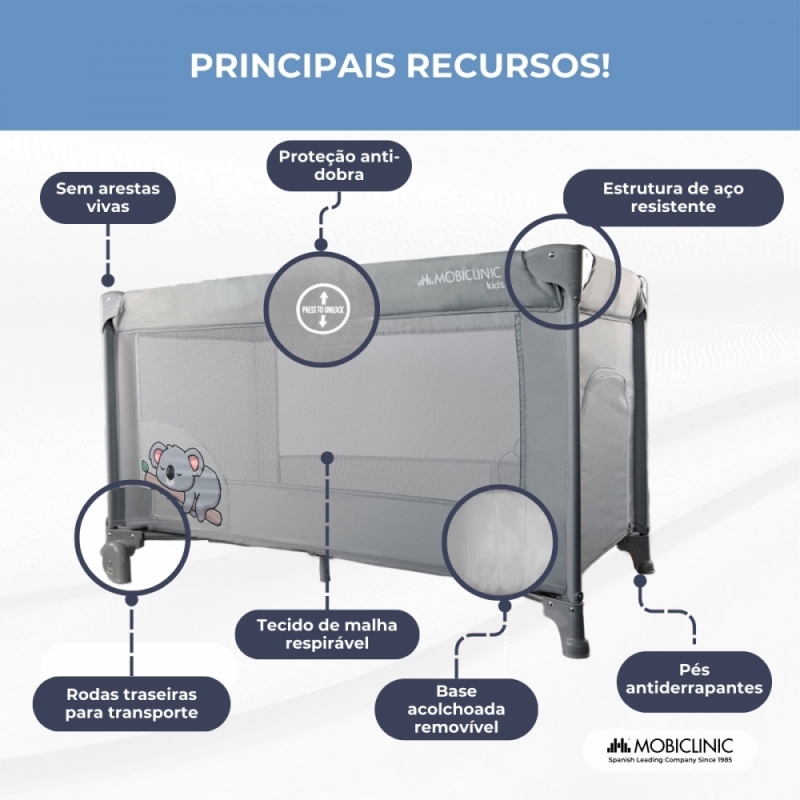 Este berço de viagem é ideal para famílias que viajam com frequência ou têm uma segunda residência. Também é uma opção eficaz deixar na casa dos avós, tios ou outros parentes, e até mesmo em salas de trânsito para que o bebê possa brincar ou descansar por alguns minutos com segurança sob a supervisão de um adulto.