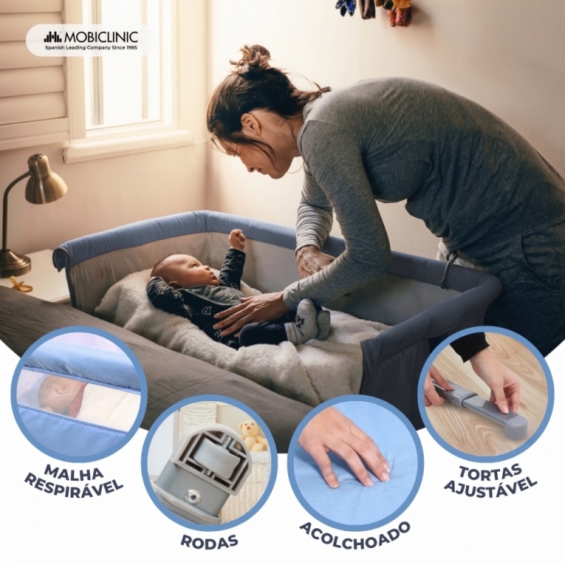 ACESSO AO BEBÊ: A principal função destes mini berços é permitir o acesso rápido e direto ao bebê durante a noite. São desenhados com várias alturas que se adaptam aos diferentes tipos de camas familiares.