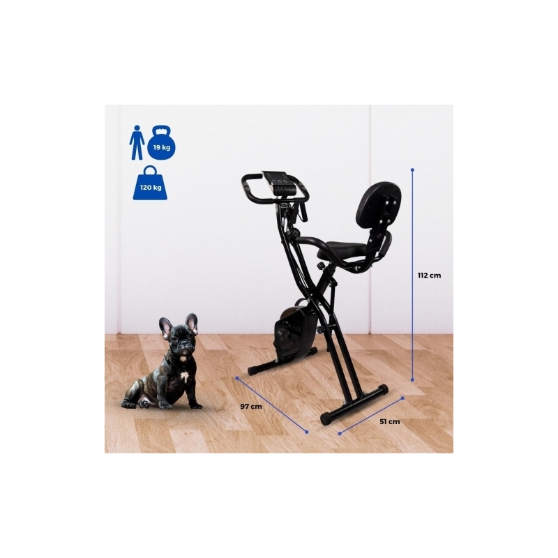 DESENHO ERGONÓMICO E AJUSTÁVEL: A bicicleta ergométrica tem um desenho ergonómico, refletido no seu assento e encosto acolchoados e ajustáveis . O assento pode ser ajustado em até 2 posições, de 76 a 89 cm, auxiliando o usuário a encontrar a melhor posição para o treino. Possui 3 formas de expansão graças à abertura regulável da base em forma de tesoura: como bicicleta ergométrica vertical, reclinada ou dobrada .