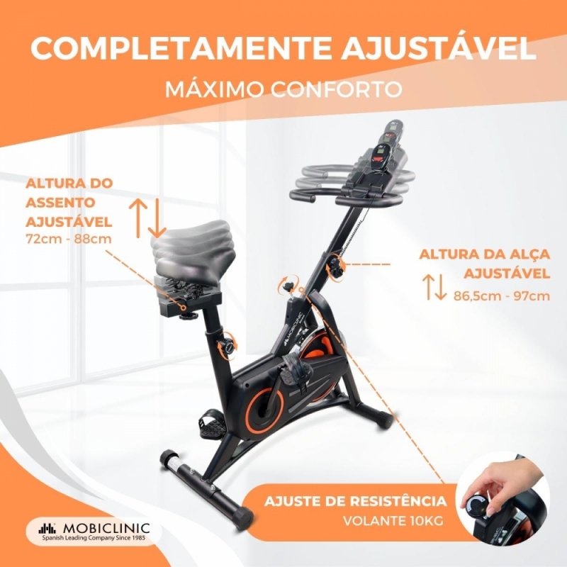 Bicicleta estática | Volante 10 kg | Ajustável | Com rodas | Visor LCD | Capacidade máx. 120kg | Makalu | Mobiclinic