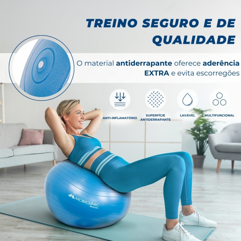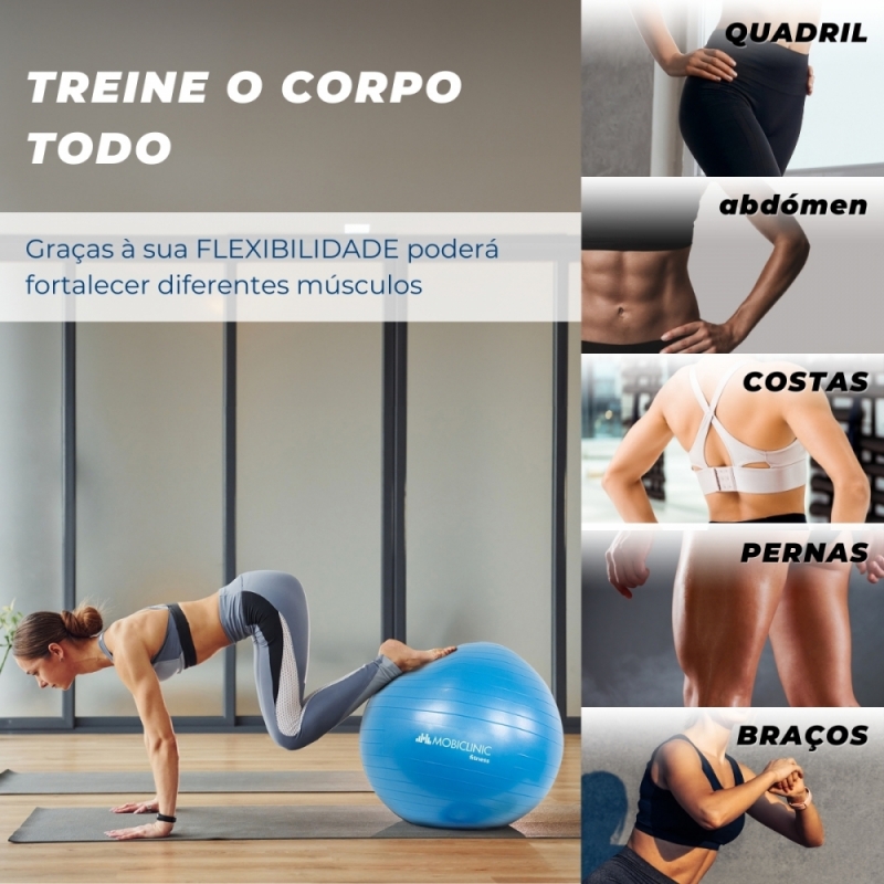 Esta bola de exercícios é ideal para fortalecer os músculos abdominais, tonificar o corpo, perder peso, para recuperação, melhorar o equilíbrio e até para exercícios pré-natais. Da mesma forma, tornou-se uma peça fundamental em qualquer ginásio e centro de fitness e ioga. Além de ser indicado no pré-parto em gestantes.