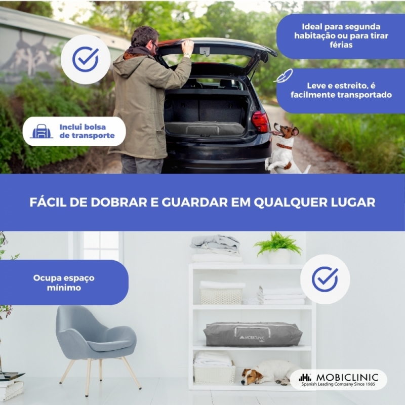 A portabilidade é um aspecto fundamental do design. Dobrável e com bolsa de transporte , este cercadinho pode ser facilmente desmontado e reinstalado na casa de parentes ou durante as férias. Seu design compacto ocupa menos espaço que os cercadinhos de plástico e facilita o transporte.