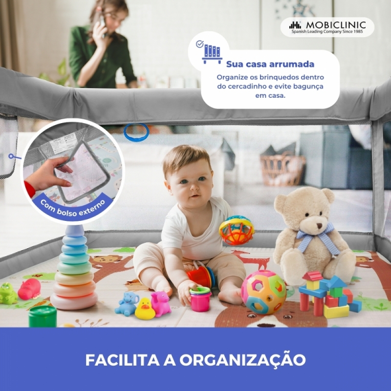 VIGILÂNCIA SIMPLIFICADA: A malha respirável promove ventilação e visão 360º , permitindo que os pais ou cuidadores realizem outras tarefas sem perder de vista os mais pequenos. O cercadinho é útil para conter temporariamente a criança durante atividades como cozinhar , limpar ou receber visitas em casa, sem a necessidade de supervisão constante.