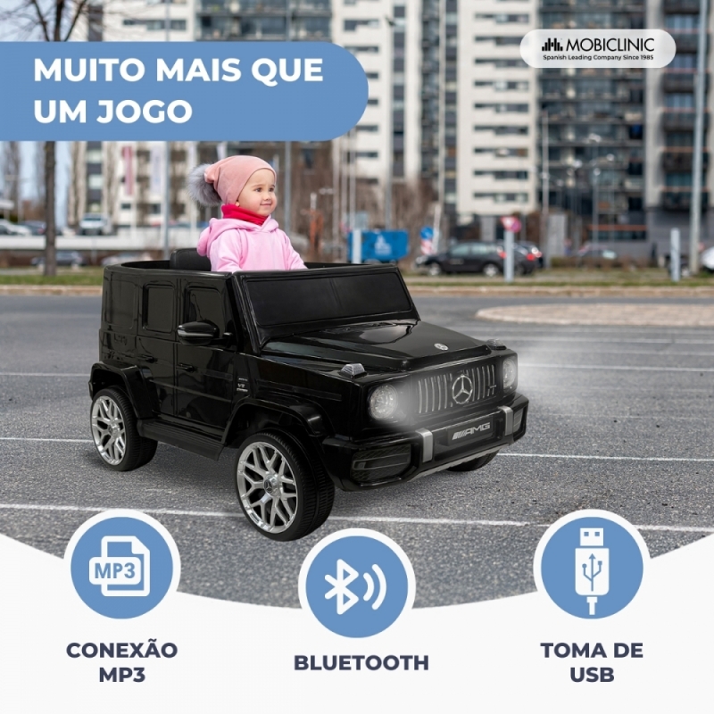 Para que a diversão nunca pare, este carro conta com tela elétrica multifuncional que inclui Rádio FM, porta USB e Bluetooth. Isto permite que as crianças ouçam as suas músicas favoritas enquanto desfrutam das suas viagens, criando uma experiência ainda mais personalizada e divertida.