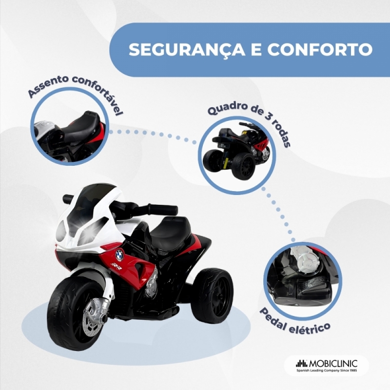 A motocicleta elétrica MobiXplo é a companheira perfeita para os pequenos pilotos que procuram aventuras cheias de diversão e estilo. Projetada para oferecer uma experiência emocionante e segura, esta motocicleta combina funcionalidade e design autêntico que meninos e meninas com 18 meses ou mais vão adorar. Com a garantia da licença oficial BMW, esta moto reflete o detalhe e a qualidade de um veículo real, adaptado ao tamanho e às necessidades dos mais pequenos.