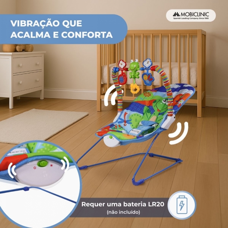 VIBRAÇÃO RELAXANTE: O balanço para bebês Flash possui um sistema de vibração suave que é ativado sob o apoio para os pés do assento. A vibração ajuda a acalmar e relaxar o bebê, promovendo descanso e proporcionando maior conforto. Um toque extra de bem-estar para o seu pequeno!