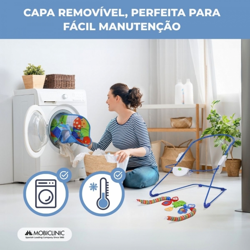 Cuidar da rede é fácil, o tecido do assento é removível e lavável à máquina, garantindo que ela esteja sempre pronta para uso. Quanto à segurança, a rede possui cinto de segurança ajustável que prende o bebê no lugar correto, evitando movimentos acidentais. Além disso, seus pés antiderrapantes oferecem estabilidade adicional, garantindo que ele permaneça firme e seguro.