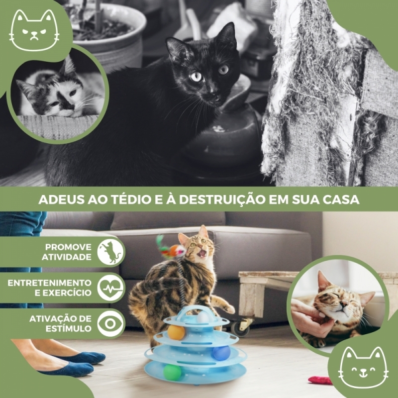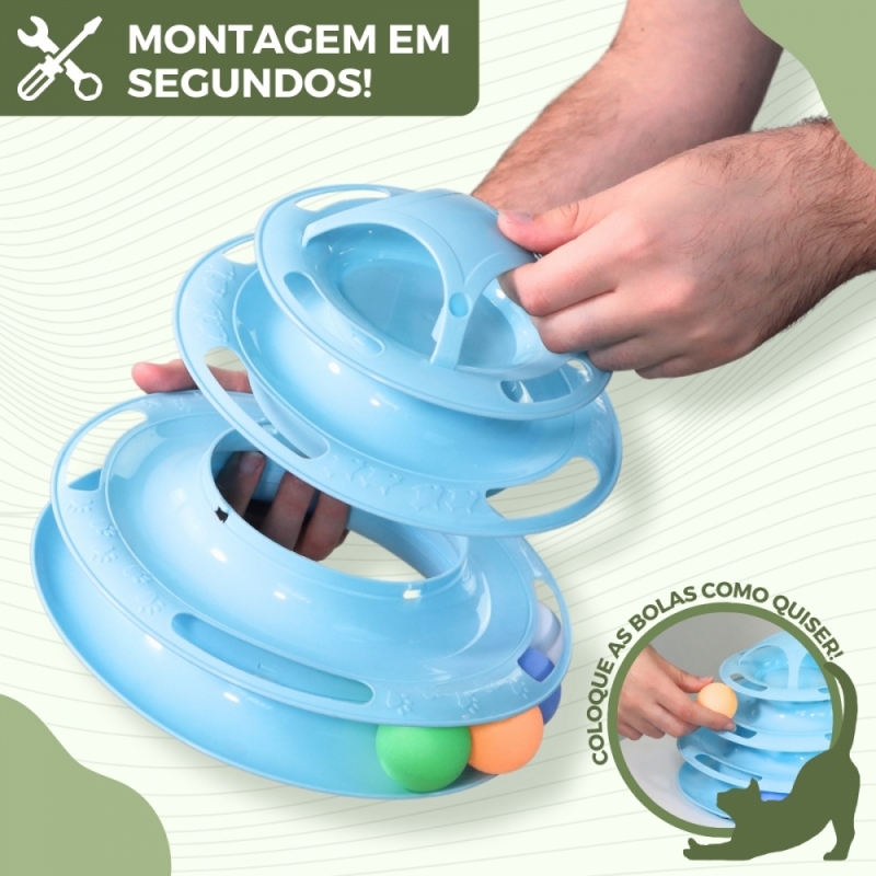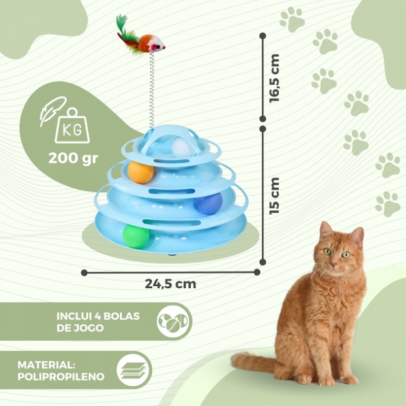 Além disso, as bolas do brinquedo inteligente para gatos, quando deixadas dentro da estrutura, giram quando o seu gato as toca, captando sua atenção e estimulando seus instintos de caça, proporcionando-lhe uma experiência de jogo dinâmica e divertida. Embora inclua 4 bolas , uma por nível, você pode retirar as bolas e colocá-las no nível da estrutura que preferir.