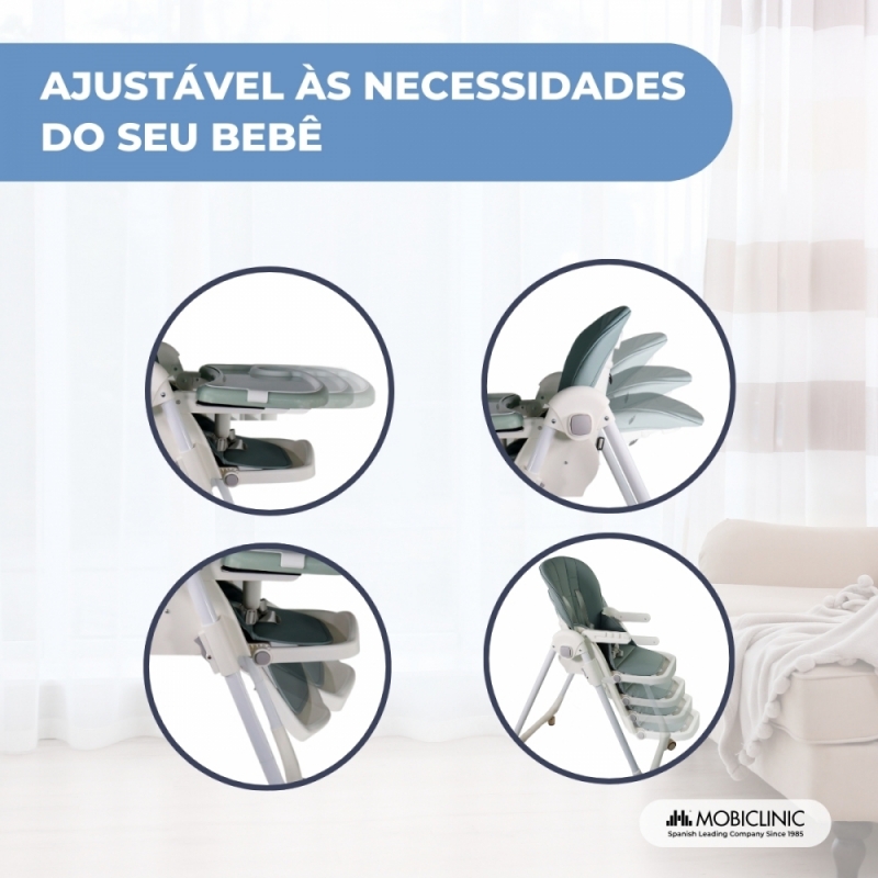 ENCOSTO RECLINÁVEL: O encosto também pode reclinar em até 4 posições diferentes, o que ajuda o bebê a dormir, descansar ou manter-se ativo sem problemas.