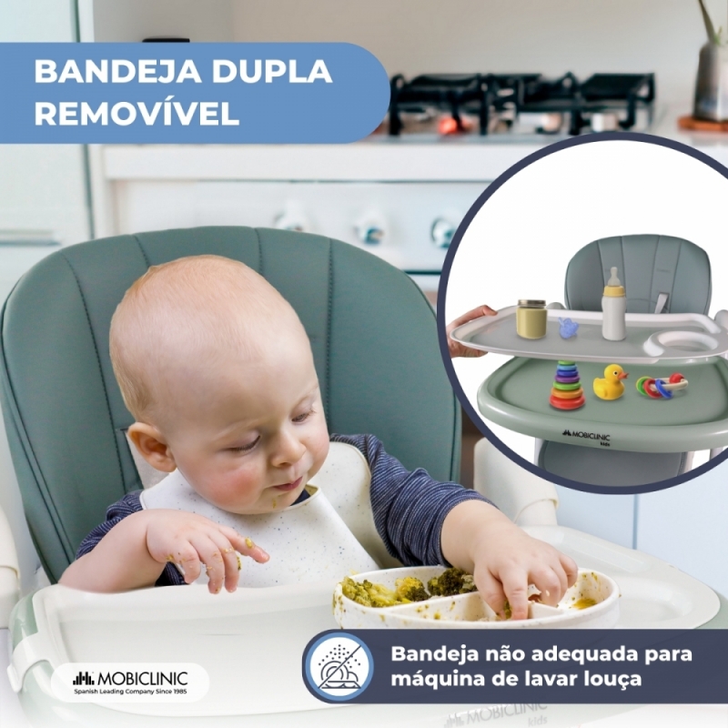 MULTIFUNCIONALIDADE: A possibilidade de extrair o tabuleiro facilita a sua utilização prolongada como assento quando a criança for maior, desde que respeite o peso máximo suportado. Isso permite que a criança brinque, pinte, interaja com o ambiente ou até mesmo aprenda a manusear os talheres.