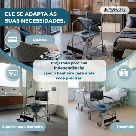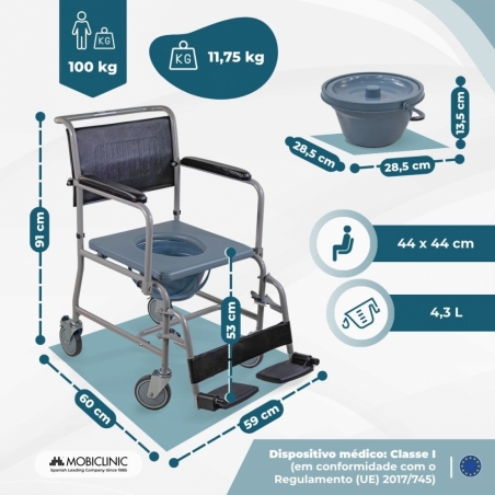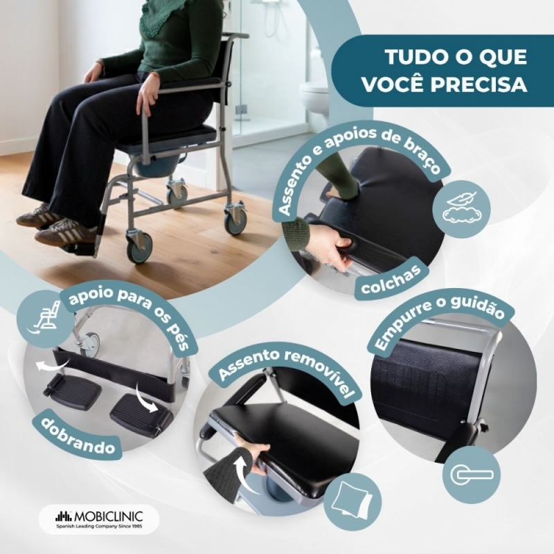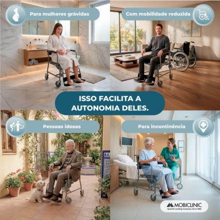 O cadeira com sanita Ancla, é um auxiliar de banho ideal para pessoas com mobilidade reduzida ou que têm dificuldade em ficar limpas ou satisfazer as suas necessidades. Esta cadeira de banho é realmente manejável e muito confortável para se movimentar em casa.