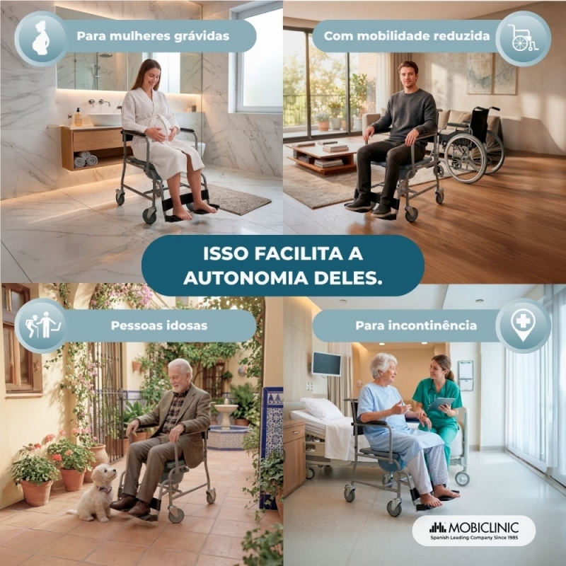 A cadeira com sanita Ancla proporciona conforto e facilidade de utilização ao alcance de qualquer pessoa. É um produto altamente valorizado entre cuidadores e/ou familiares de pessoas com deficiência, que estão em algum processo de reabilitação ou simplesmente por causa da idade não têm mais agilidade para depender de si mesmos.