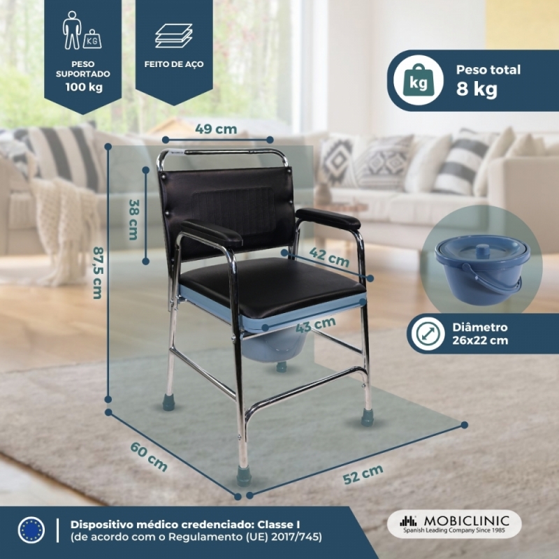 A cadeira sanitária Modelo Velero é excelente para pessoas com problemas no acesso à casa de banho, como idosos ou pessoas com problemas de mobilidade. Esta cadeira sanita irá ajudá-los no seu dia-a-dia e irá aliviá-los em momentos tão importantes como ir à casa de banho.