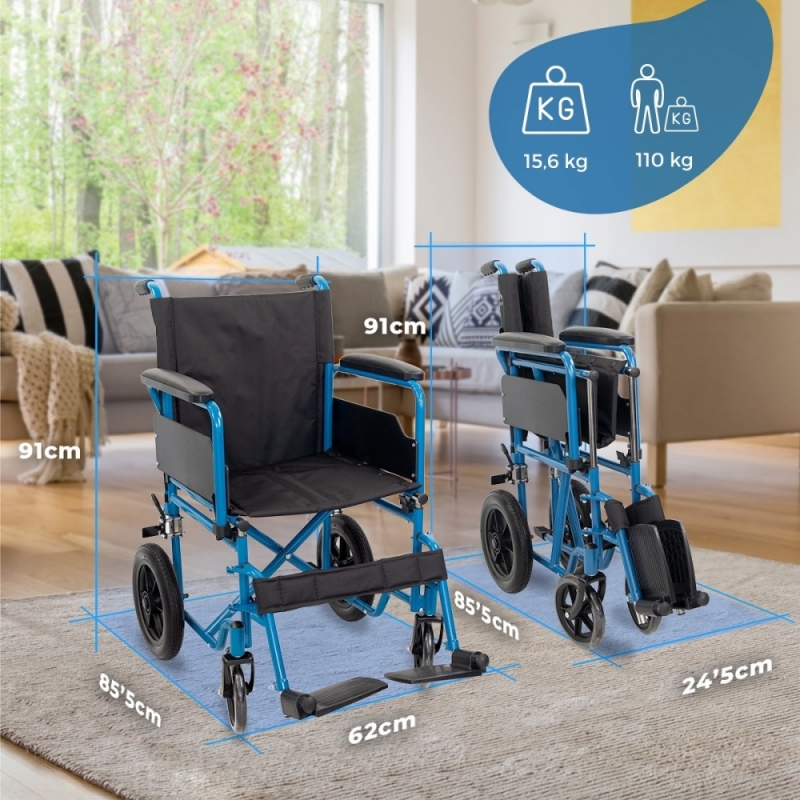 Cadeira de rodas dobrável | Rodas traseiras pequenas | 46 cm | Azul | Marsella | Mobiclinic